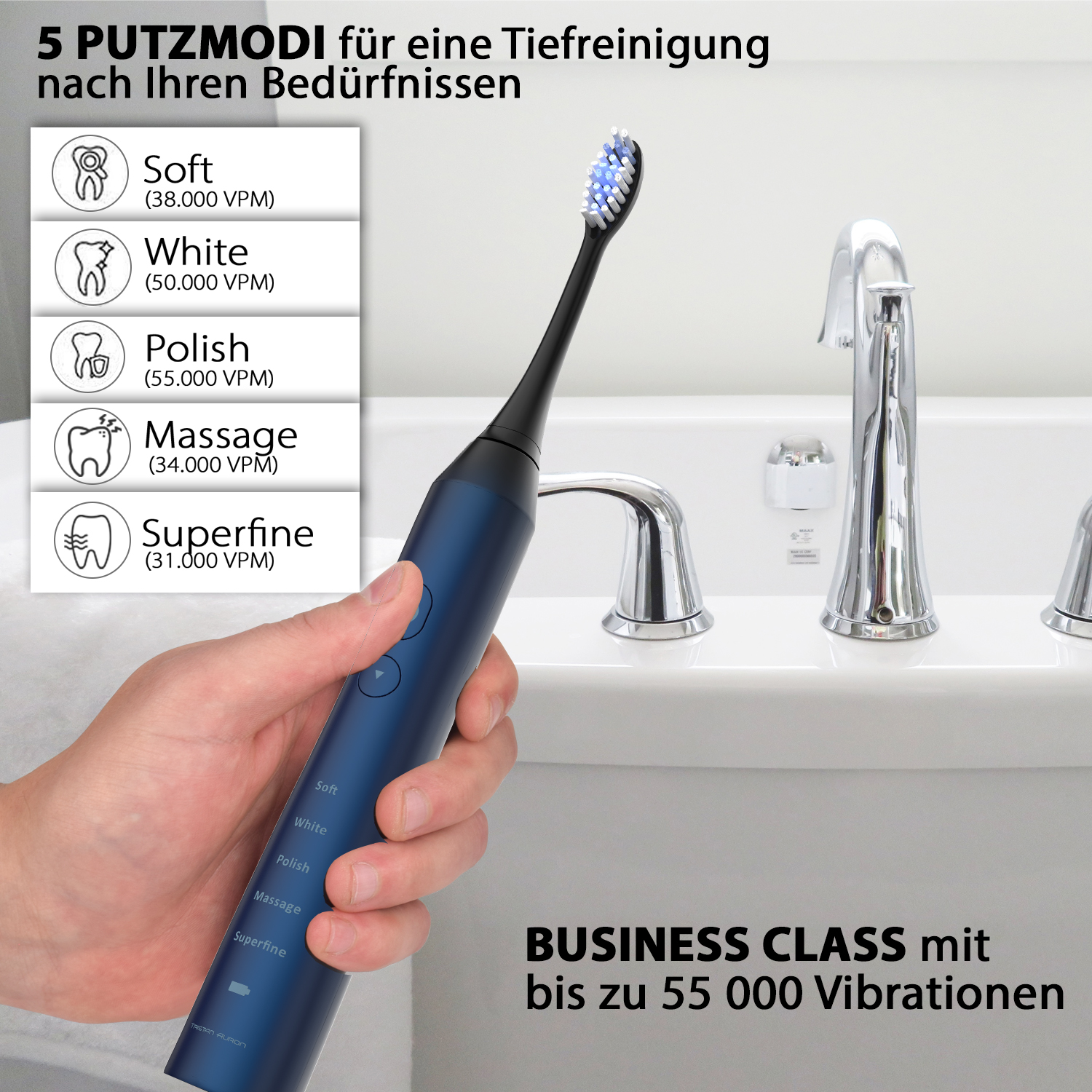 5 verschiedene Putzmodi (Soft, White, Polish, Massage und Superfine) mit 55 000 Schwingungen