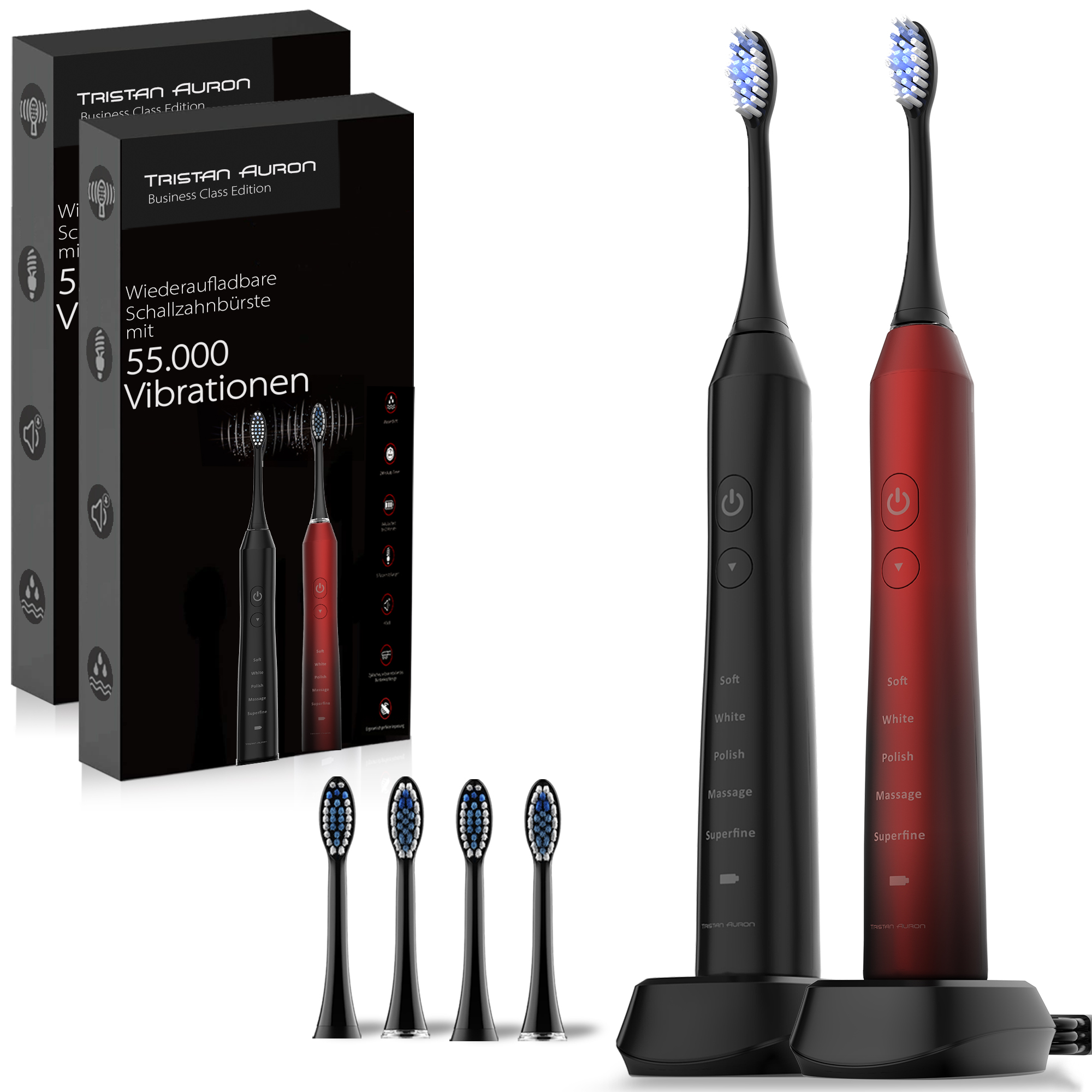 Tristan Auron Schallzahnbürste Business Class Doppelpack mit 4 Aufsätze Business Class (rot/schwarz)