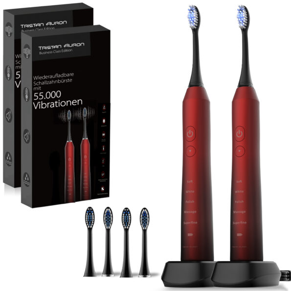 Tristan Auron Schallzahnbürste Business Class Doppelpack mit 4 Bürstenköpfe Business Class (rot)