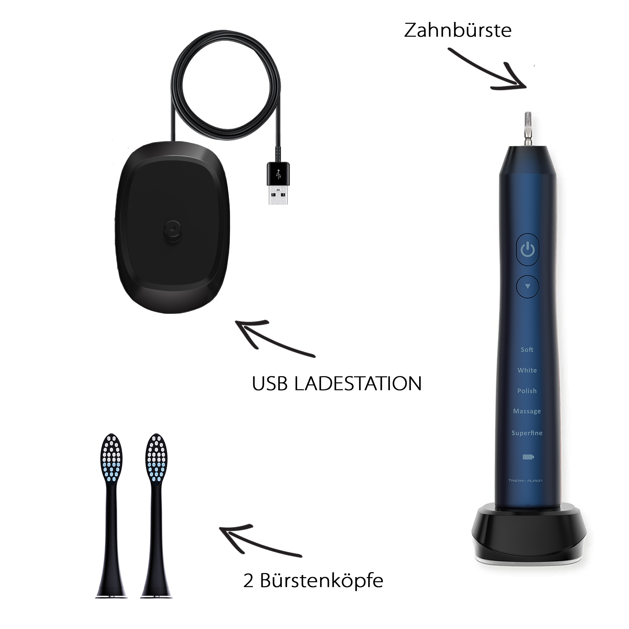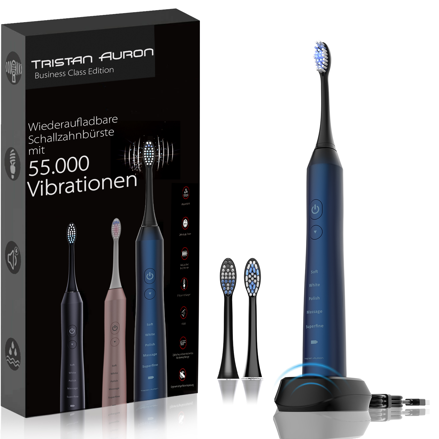 Tristan Auron Schallzahnbürste Business Class mit 2 Aufsätze (blau)